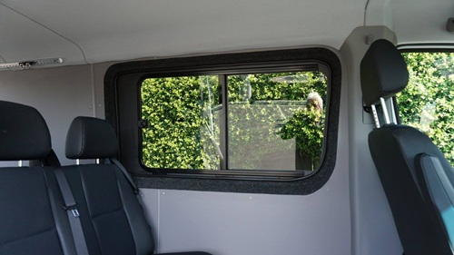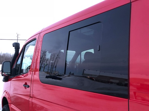 Asennetaan leikkaamalla korivahvikkeita mukaileva aukko kylkeen sekä suojaamalla aukon reunat asentamalla U-uralista peltiin. Tämän jälkeen ikkuna liimataan kylkeen autokoriliimalla.