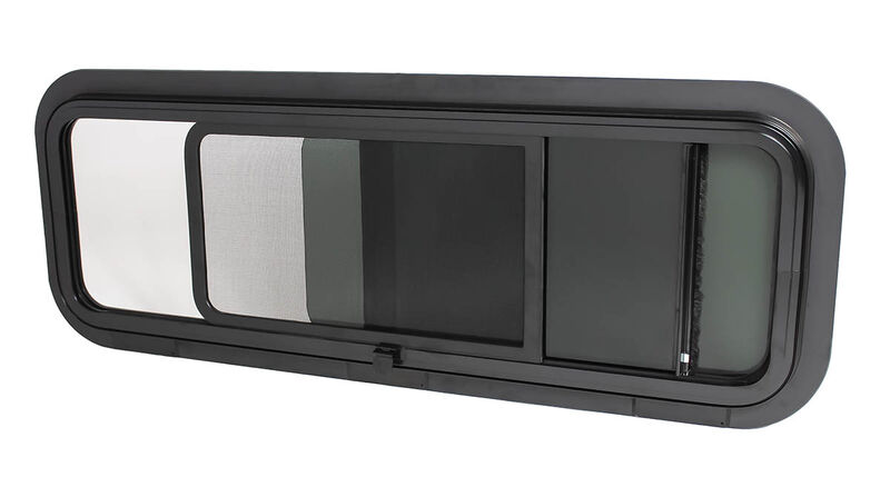 Kylkeen tai liukuoveen asennettava lasinen ikkuna, jossa avattava liukuluukku ja hyttysverkko.